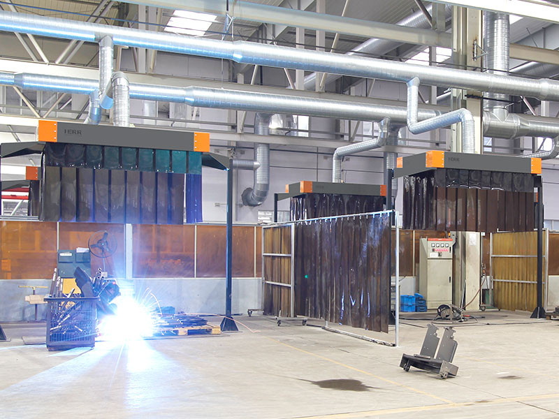 您可選擇吸氣罩吊裝或立柱固定。另外可選擇不同長度的、顏色或透明的遮護條,根據(jù)需要,您還可以選配各種功能的開合式防護屏作為工件及人員出入口。我們也可以根據(jù)您的需求配置照明燈具或預(yù)留電源線槽。