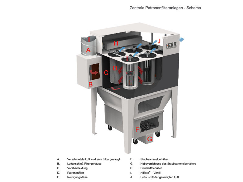 HERR所有濾筒凈化器采用濾筒豎置方式。
