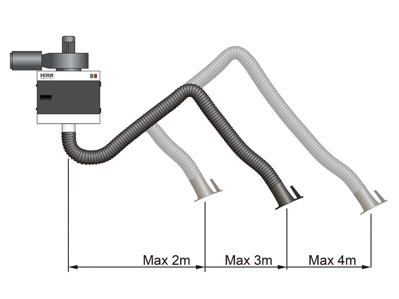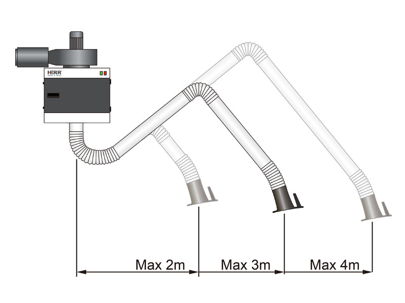HERR靜電吸氣系統(tǒng)采用靜電分離原理來除去灰塵和油霧。標(biāo)準(zhǔn)配置使用金屬預(yù)過濾膜去除大顆粒。靜電主過濾器使廢氣中的灰塵電離并去除帶電粒子。最后一層(可選)活性炭去除異味??梢园惭b額外的過濾器來處理各種特定的粉塵。