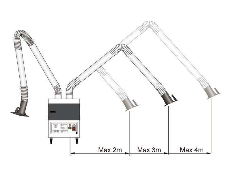 HERR靜電吸氣系統(tǒng)采用靜電分離原理來除去灰塵和油霧。標(biāo)準(zhǔn)配置使用金屬預(yù)過濾膜去除大顆粒。靜電主過濾器使廢氣中的灰塵電離并去除帶電粒子。最后一層(可選)活性炭去除異味??梢园惭b額外的過濾器來處理各種特定的粉塵。
