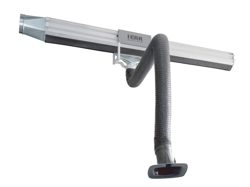 滑軌吸氣裝置由嵌有橡膠唇的鋁槽、安裝有配件的滑架、排氣臂和吸氣罩組成。通道連接到風(fēng)機(jī)。